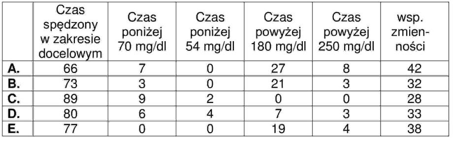 pacjent z cukrzycą typu 1 spełnia wszystkie kryteria dotyczące parametrów Ambulatoryjnego Profilu Glikemii przy stosowaniu ciągłego pomiaru glikemii?