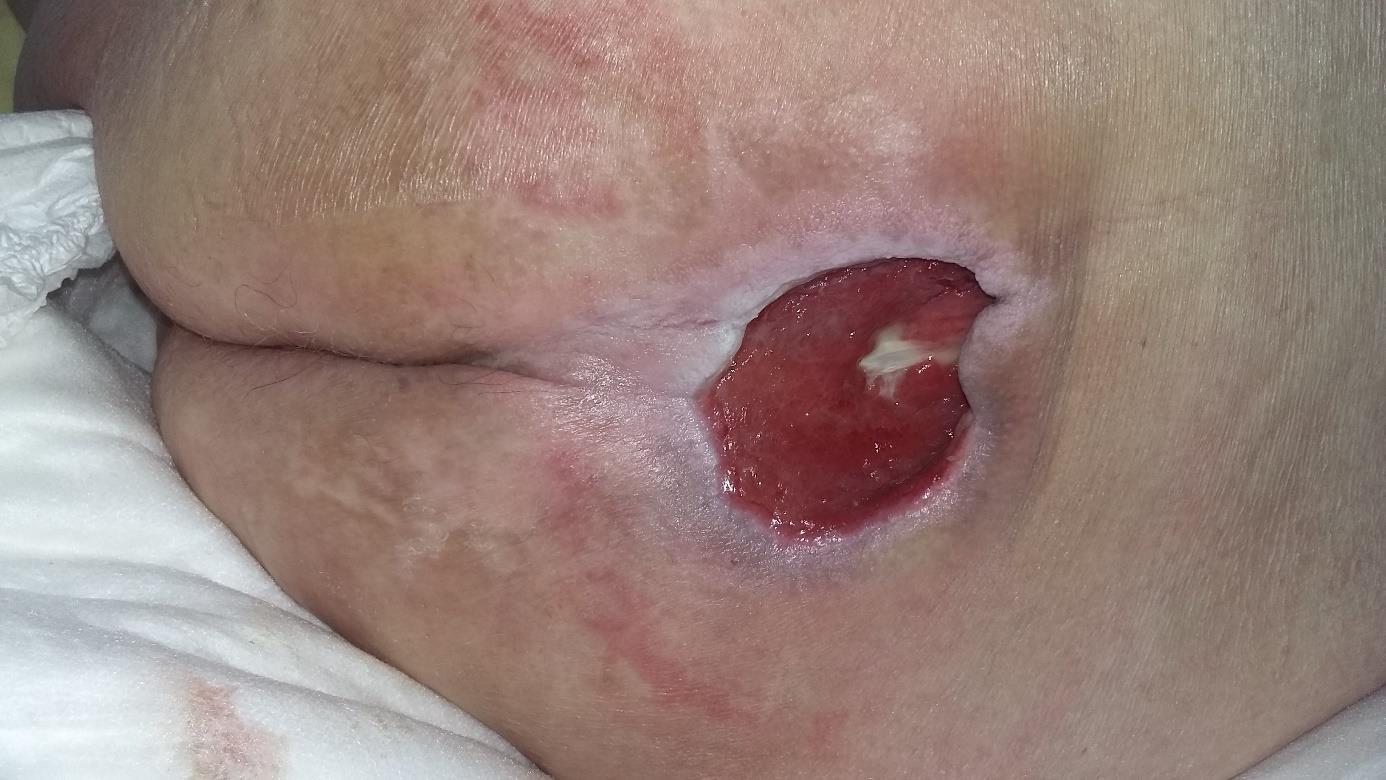 Wskaż, którego stopnia odleżynę w pięciostopniowej klasyfikacji Torrance'a przedstawia poniższe zdjęcie: