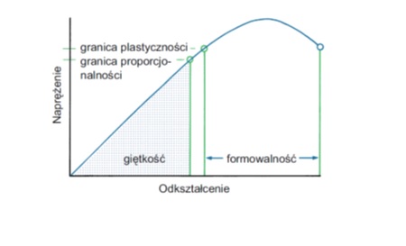 Którą właściwość reprezentuje na wykresie naprężenie-odkształcenie, odległość między granicą plastyczności a punktem zerwania?