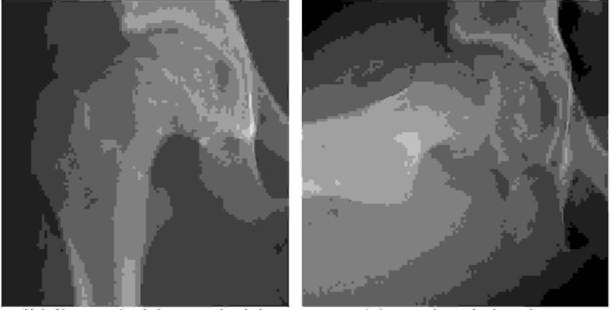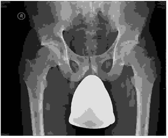 Poniższy radiogram stawów biodrowych w projekcji AP przedstawia: