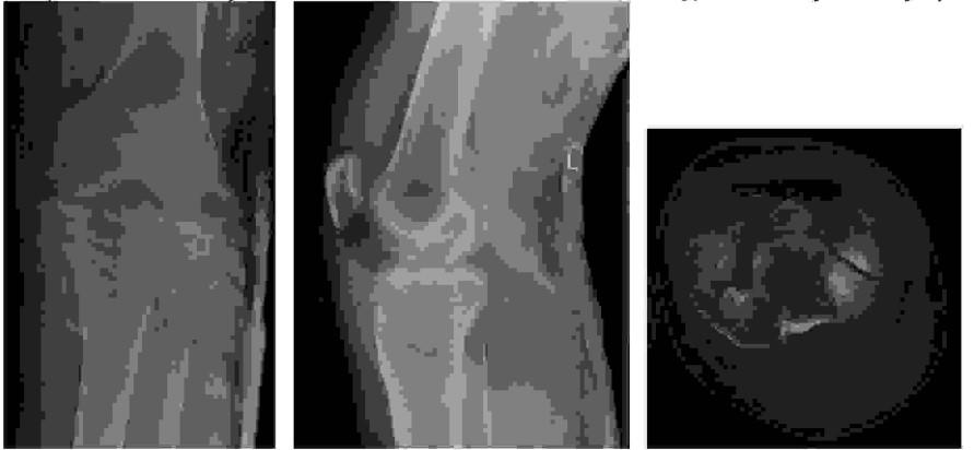 22-letni mężczyzna, dotychczas uprawiający sport, odczuwa ból obu bioder, z przewagą po stronie lewej. Klinicznie stwierdza się dodatni objaw FADIR, bolesne ograniczone zgięcie, przywiedzenie i rotację wewnętrzną. Wskaż najwłaściwsze badania obrazowe: