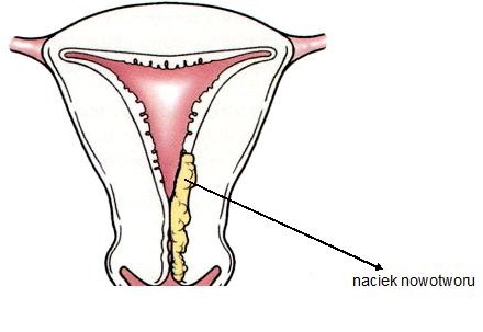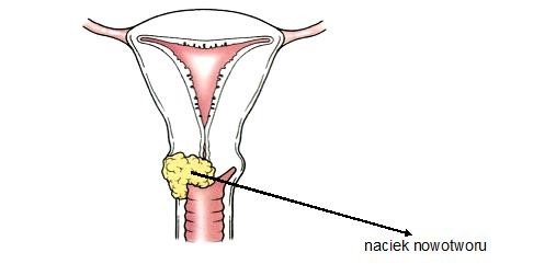 Naciek nowotworowy u chorej na raka błony śluzowej trzonu macicy zajmuje szyjkę macicy jak na rycinie. Oceń stopień klinicznego zaawansowania według klasyfikacji FIGO: