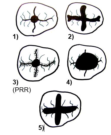 5) często występują w zębach trzonowych w miejscu rozwidlenia korzeni;