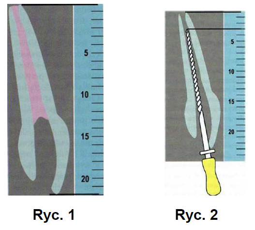 Pomiar długości kanałów na podstawie zdjęcia radiologicznego w górnych trzonowcach jest często utrudniony. Spowodowane jest to: