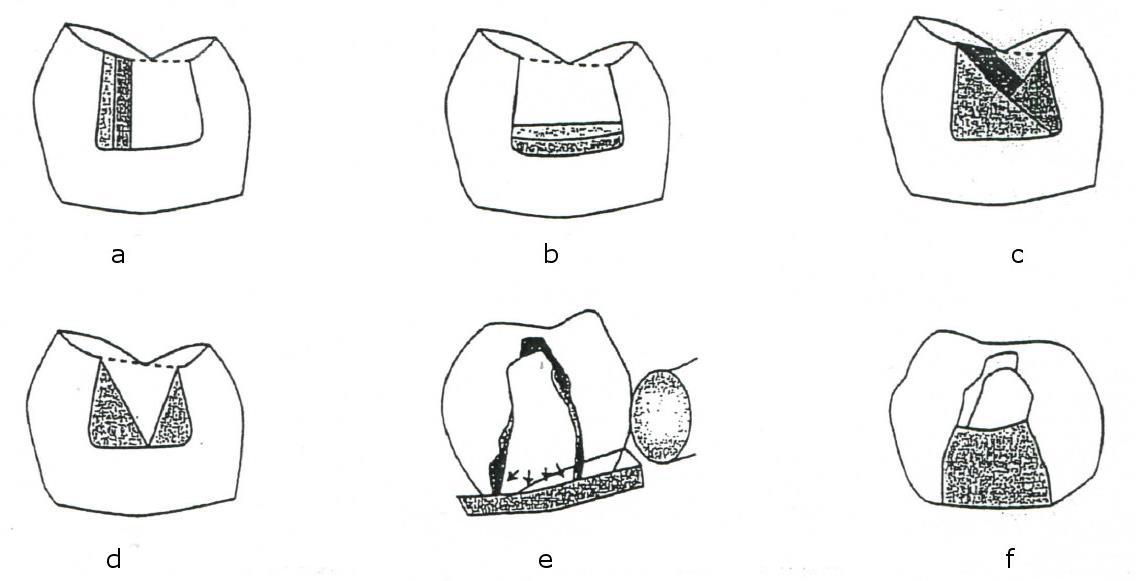 C-faktor wyrażany jest jako stosunek liczby powierzchni związanych do powierzchni wolnych. Wskaż, która grafika odzwierciedla prawidłowo współczyn- nik konfiguracyjny ubytku dla III klasy?